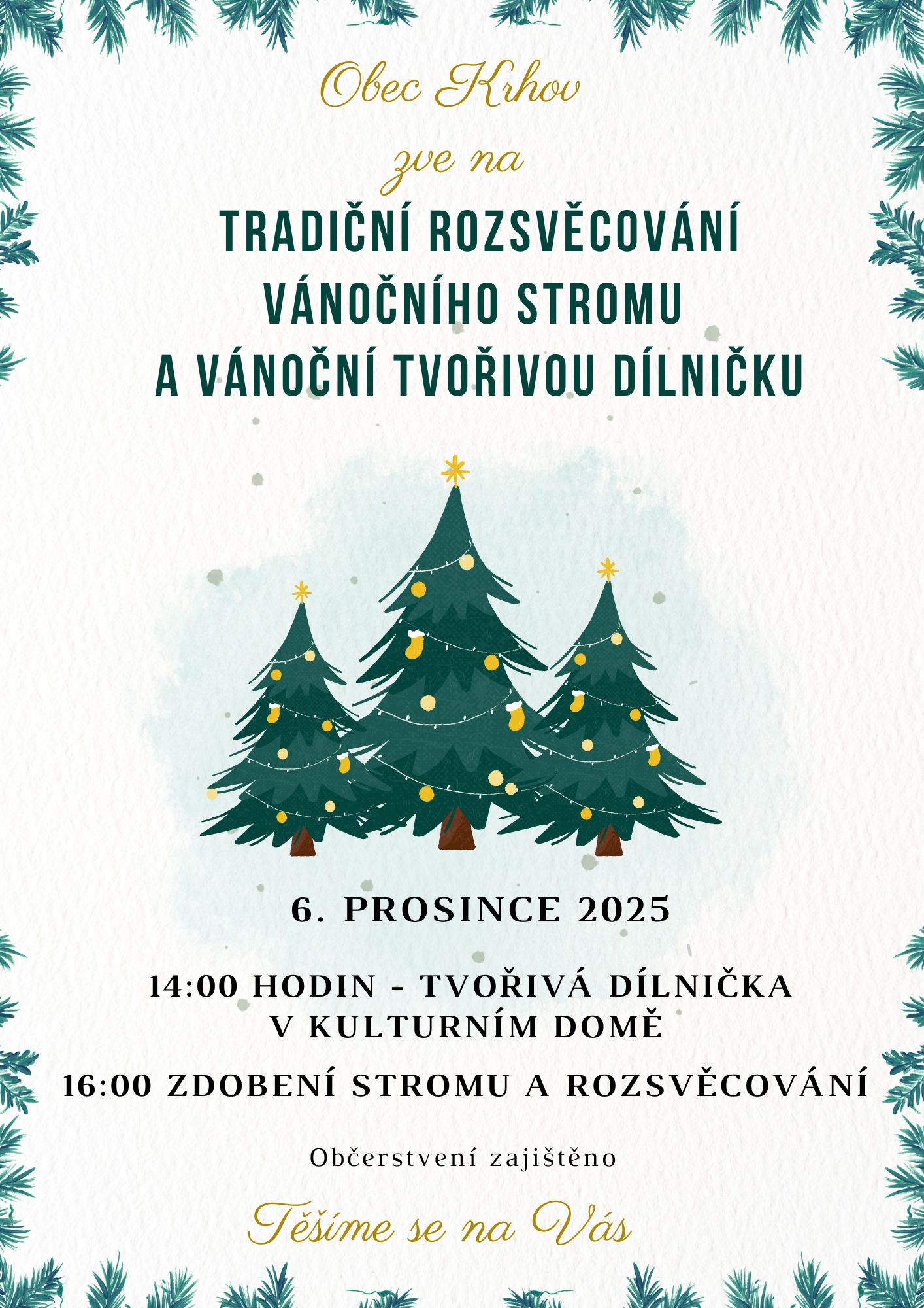 Obec Krhov Vás zve na tradiční rozsvěcování vánočního stromu a vánoční tvořivou dílničku v sobotu 06. prosince: