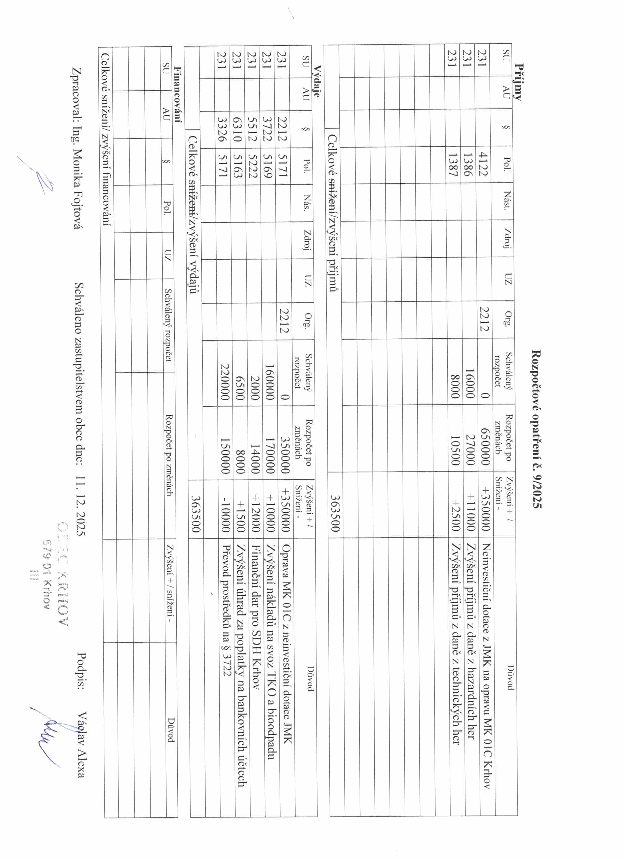 Schválený střednědobý výhled rozpočtu obce Krhov na roky 2027 a 2028