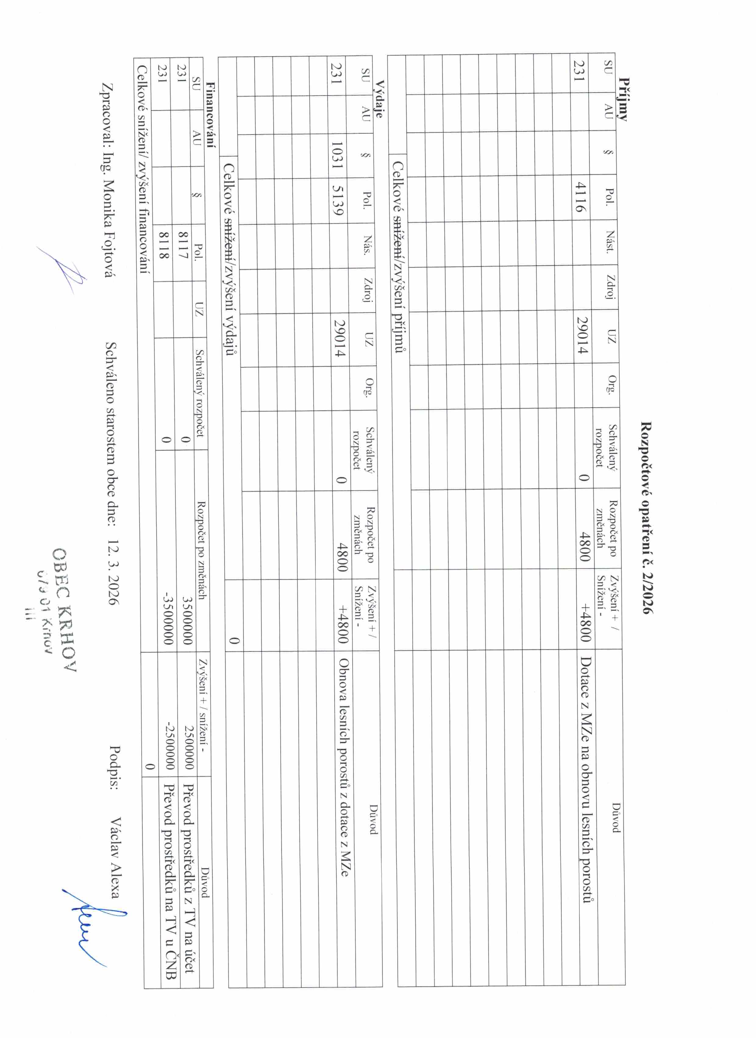 které se uskuteční ve čtvrtek 19. 03. 2026 v 18:30 h. v zasedací místnosti Obecního úřadu Krhov.