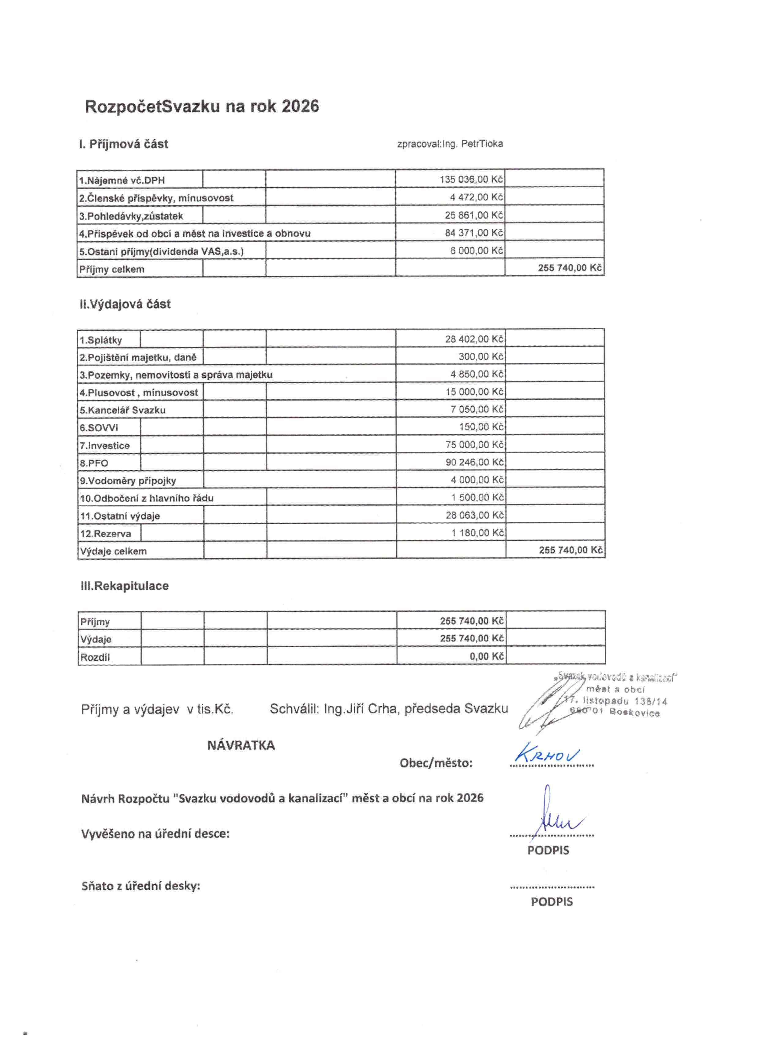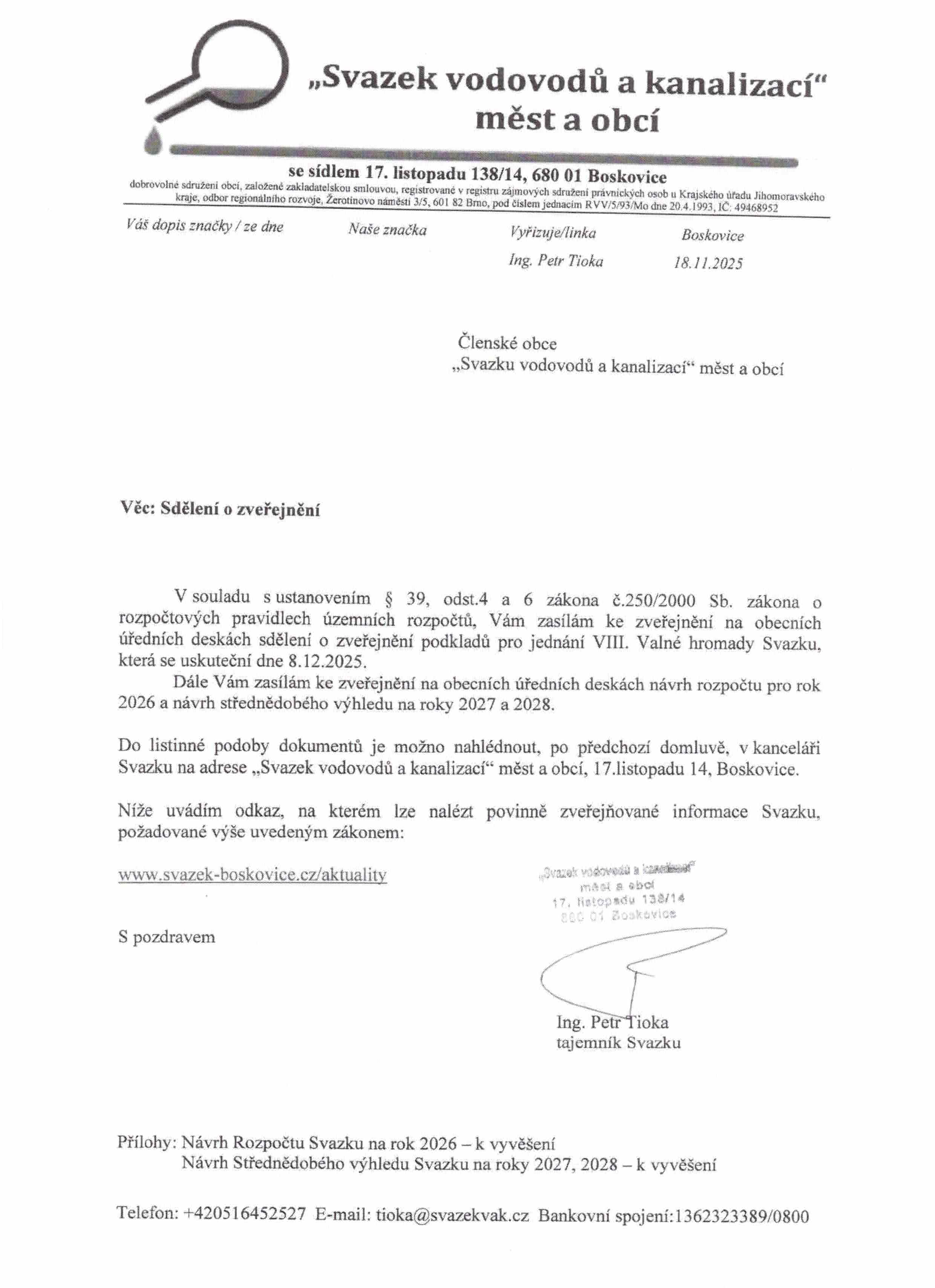 Svazek vodovodů a kanalizací - rozpočtové dokumenty